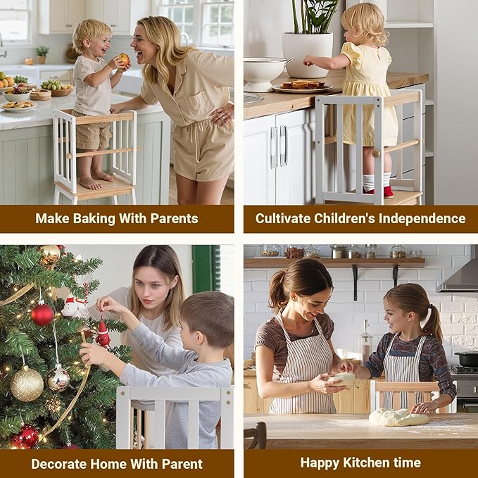 - MADE TO LAST: This Sturdy tower stool for learning is made from solid natural bamboo with a child-safe, meticulous finish that prevents scratches and scuff marks. Safely supports 150 lbs for toddlers 18 months to 3 years old.
