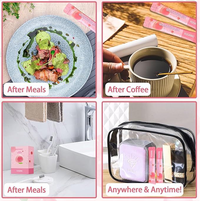 - 🦋【Fresh Breath】Travel size mouthwash's peach flavour smells great and tastes fresh, which can bring you closer to your friends and make you feel confident to open your mouth and socialise without fear.