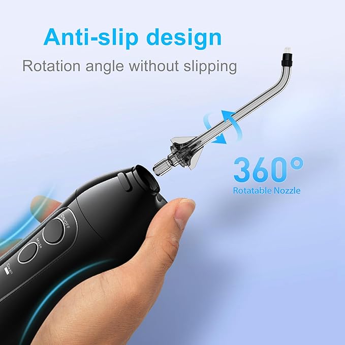 - 【How to Use】Press the nozzle replacement button on the top of the water flosser; Then carefully pull out the old nozzle and insert the new one into the nozzle slot.It is easy to install and replace.