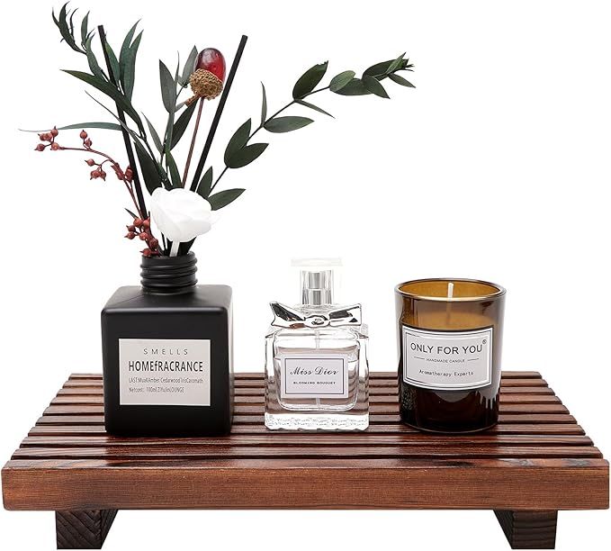- MULTIFUNCTION WOOD RISER: The wooden tray decor will match well with the items you put on it, such as skincare, dispenser, plants, candles, mouthwash, perfumes, flower pot, jewelry, etc; This wood soap dispenser tray is very beautiful and keeps things off the counter. Great as bathroom decor, kitchen counter decor, sink tray, vanity decor, soap dispenser tray.