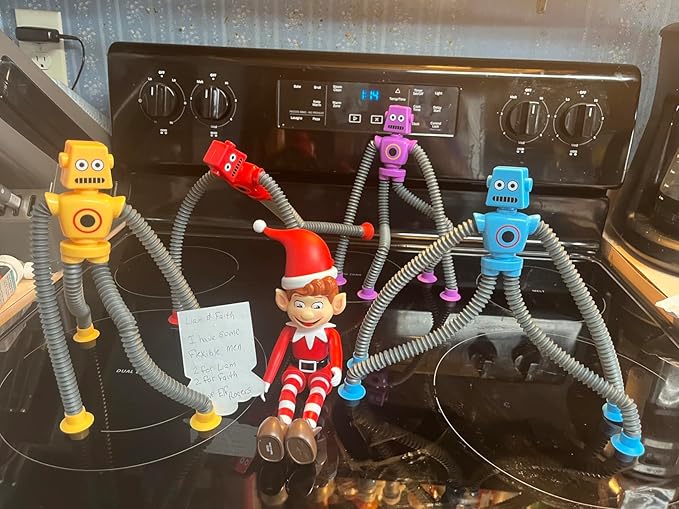 - 【autism toys】Suction Cup Robot Toy are a fun and engaging sensory toy, When stretched, the tubes create a satisfying popping sound that stimulates the senses and provides a calming effect. The suction cup at the bottom allows it to be attached to smooth surfaces like mirrors, windows, and tiles. Kids can enjoy sticking it anywhere and watching it bend and twist in different directions.