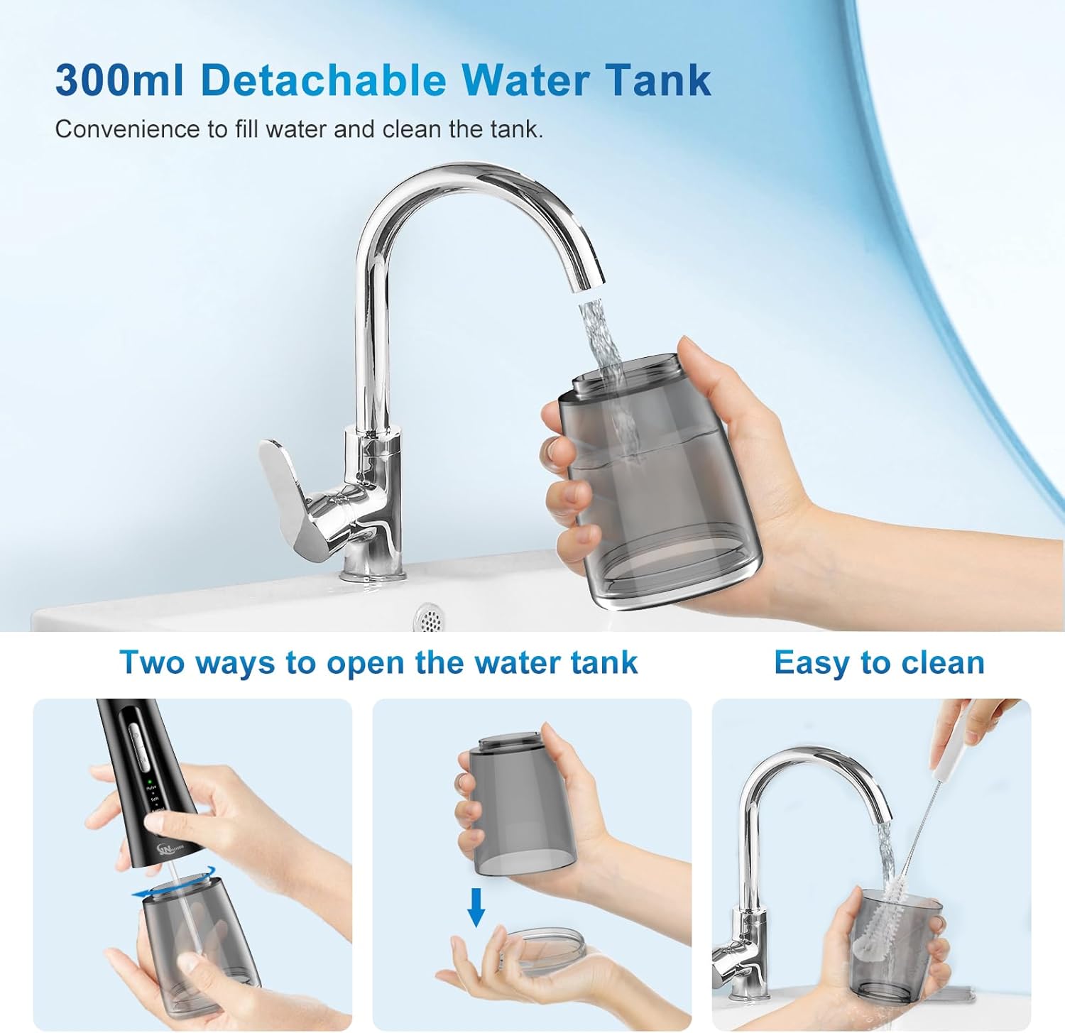 - 4 Clean Modes: JNGOODS cordless oral flossers teeth cleaner has Normal, Soft, Pulse and Power modes for choosing with Low-noise below 60db, which can meet various oral needs.
