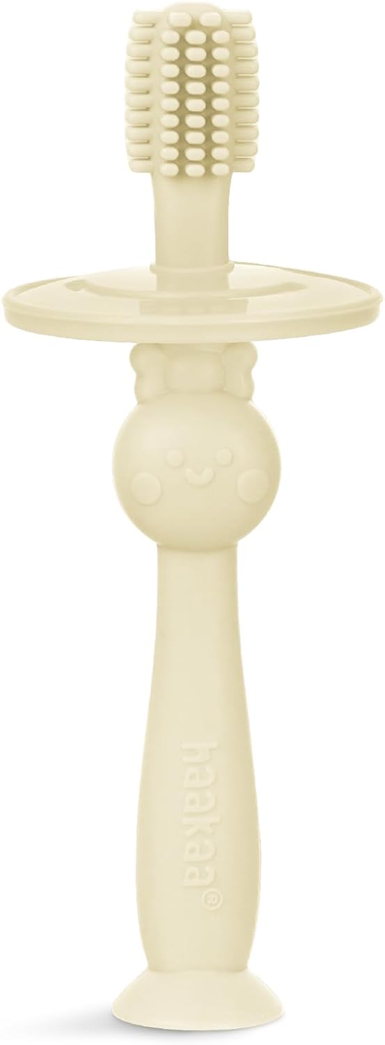 haakaa Infant Toothbrush, Easy to Hold 360° Baby Toothbrush, Train 6month+ Infants Babies and Toddlers for Oral Hygiene, Teether Effect for Sore Gums, 1pc (Cream)