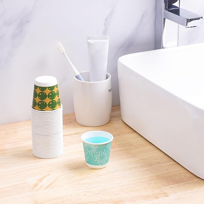 - UPGRADES AND IMPROVEMENTS: We have improved the size and shape of these paper cups based on the original quality, allowing the bathroom cups to have a sufficient capacity of 3OZ and to be used with most of the cup holders