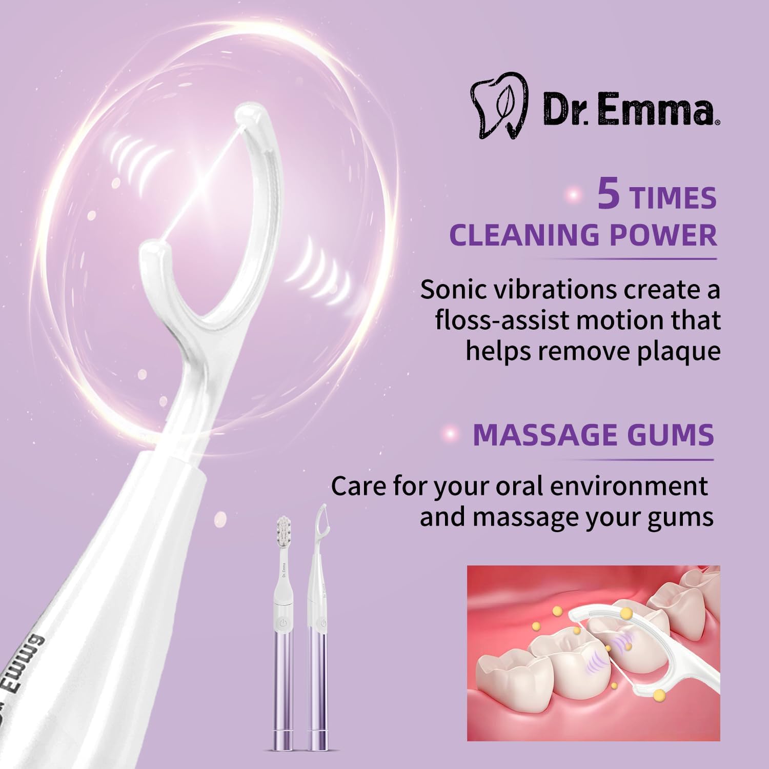 Dr. Emma Electric Vibration Flosser with Replaceable Floss Picks and Toothbrush, Power Flosser for Adults, Dental Flosser Kit for Teeth Cleaning, Water Flosser Alternative, Purple
