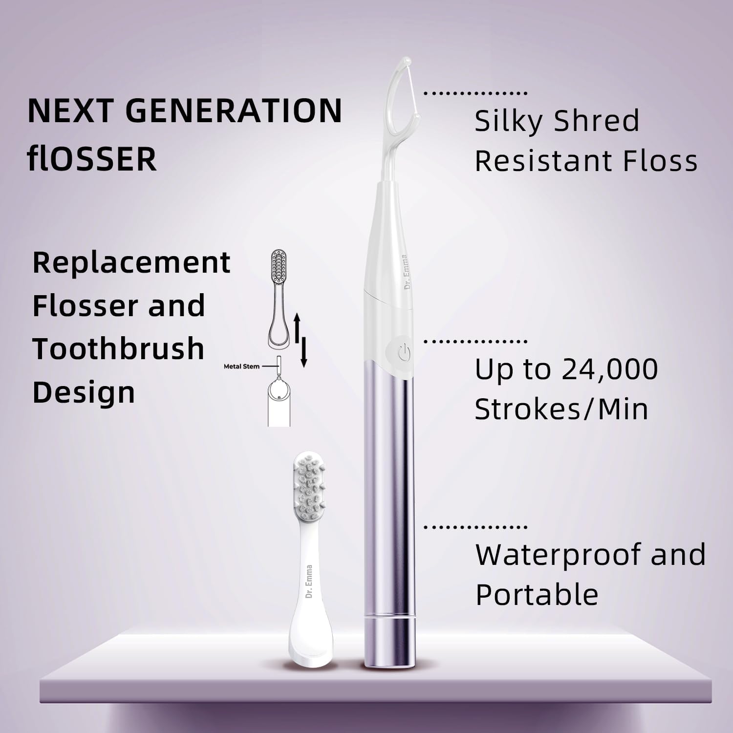 - BUILDS HEALTHY HABITS: Our power flosser makes cleaning your molars easy and comfortable. This advanced flosser ensures thorough cleaning and gentle gum stimulation for a healthier, brighter smile. Flossing MORE regularly with Dr. Emma.