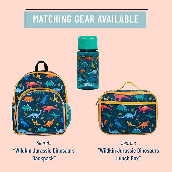 Wildkin Kids 16 Oz Water Bottle – BPA-Free Tritan, Leak-Proof Lid, Durable & Easy to Clean - Jurassic Dinosaurs