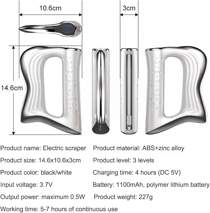- 【Durable】: The Multifunctional Massage Tool comes with a 1100mAh large-capacity lithium battery. With just 30 minutes of use per day, it can last up to 14 days. The tool is also designed to be compatible with power banks, offering flexibility and convenience for quick and easy charging.