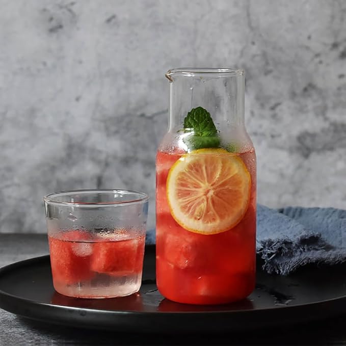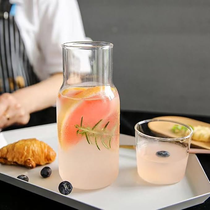 - 👉【Premium Quality Design】: Made from high quality, heat-resistant borosilicate glass, this carafe and tumbler set is designed to last and can safely handle both hot and cold beverages.