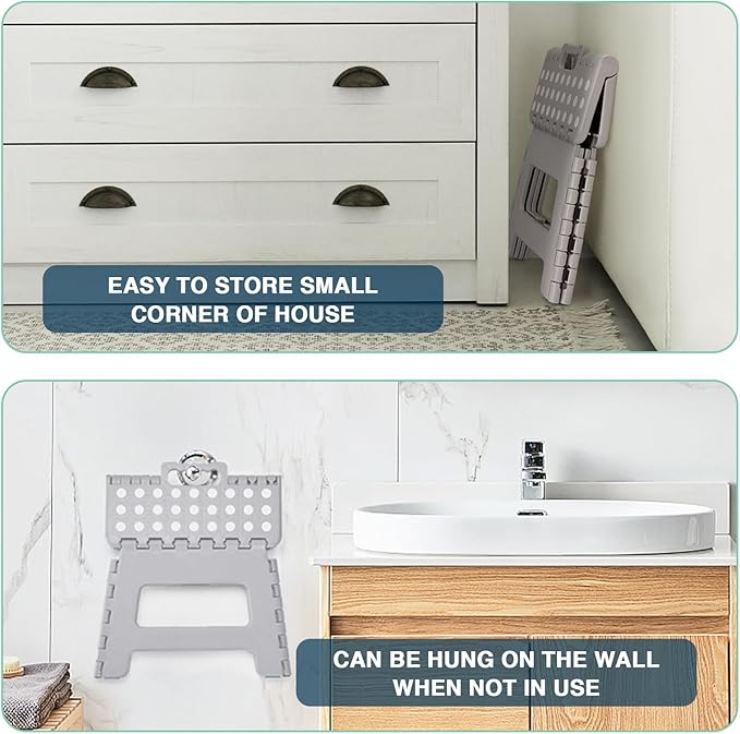 Dyforce 9" Folding Step Stool for Kids and Adults, Collapsible Light-Weight Foot Stools Foldable for Toddler, Kitchen, Bathroom, 300 lb Capacity (Grey)