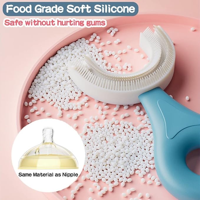 - 【Safe and Soft Bristles without Hurting Gums】Our odorless brush head is made of food grade soft silicone for effective and gentle cleaning, protecting kid’s delicate teeth and gums.End the daily brush wars from now on with this u-shaped toothbrush!