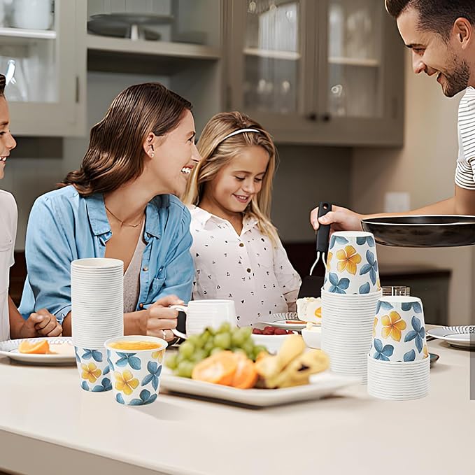 Tamone 600 Pack 3 oz Bathroom Cups, Small Paper Cups Flower Design, Mouthwash Cups, Disposable Paper Cups,3oz Paper Cups for Party, Picnic, BBQ, Travel, Home and Event