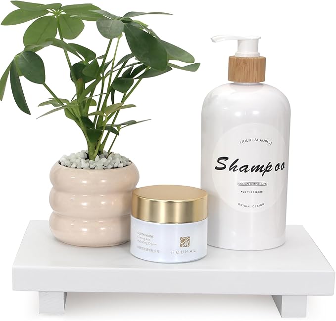 Farmhouse Bathroom Vanity Tray Wooden Kitchen Soap Sink Trays Modern Wood Riser Pedestal Stand Dish Soap Dispenser Holder for Kitchen Counter Decor White Bathroom Organizer Accessories Decorative Tray