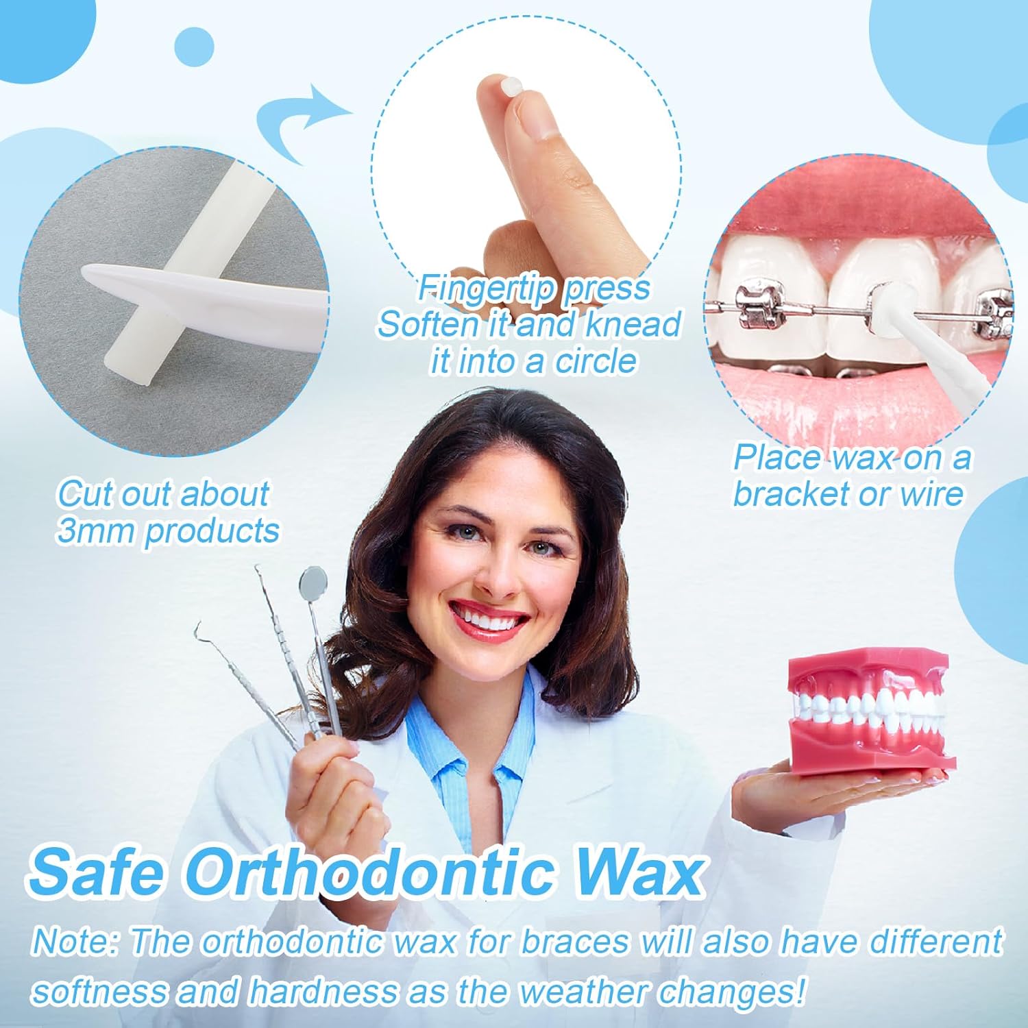 - Main Function: the clear braces wax blends in with teeth, which is not visible, and suitable for temporary relief from ligatures, springs, wires and brackets irritation, relieving pain and keeping the inner wall of the mouth from hurt