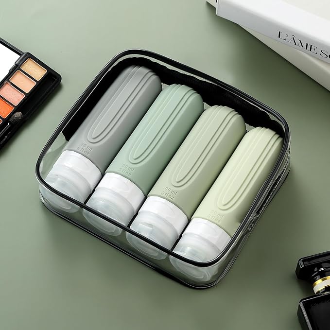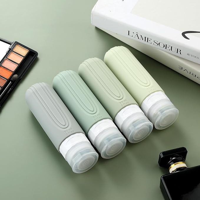 Travel Bottles for Toiletries, Tsa Approved 3oz Travel Size Containers BPA Free Leak Proof Refillable Liquid Silicone Squeezable Travel Accessories for Shampoo Conditioner Lotion (4 Pack)…