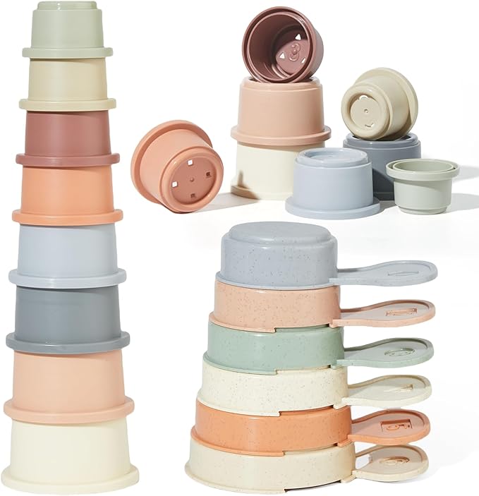 - 14PCS Bath Toys: Baby bath toys include 8pcs bath cups and 6pcs bath spoons, the size of the stacking cups are designed specifically for babies' small hands