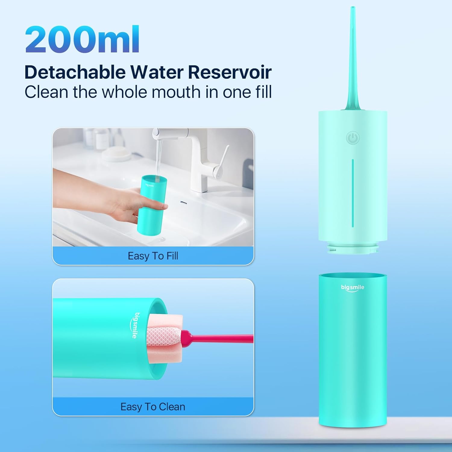 - 【Water Tight Design】: About 4 to 5 hours to fully charge. Flossing teeth 3 times a day, 1 minute each time, this strong water flosser can be used continuously for up to 45 days. A 200ml translucent reservoir, easy to see the remaining water, for the perfect amount of water for each use. After 25 seconds of inactivity, the water floss goes into sleep state, saving power and protecting the environment. Every time the use of more than 2 minutes, the cordless oral irrigator will automatically stop to prevent idling and protect the main body