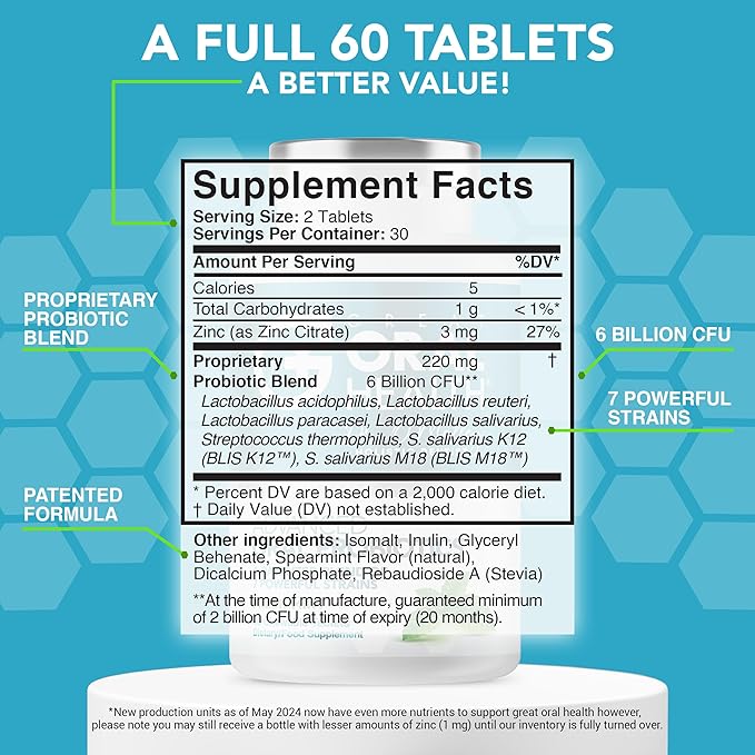 - CLINICALLY RESEARCHED A potent blend of 7 dental probiotics; these oral probiotics for teeth and gums are gluten, dairy & sugar-free, vegan-friendly, and support halitosis treatment for bad breath.