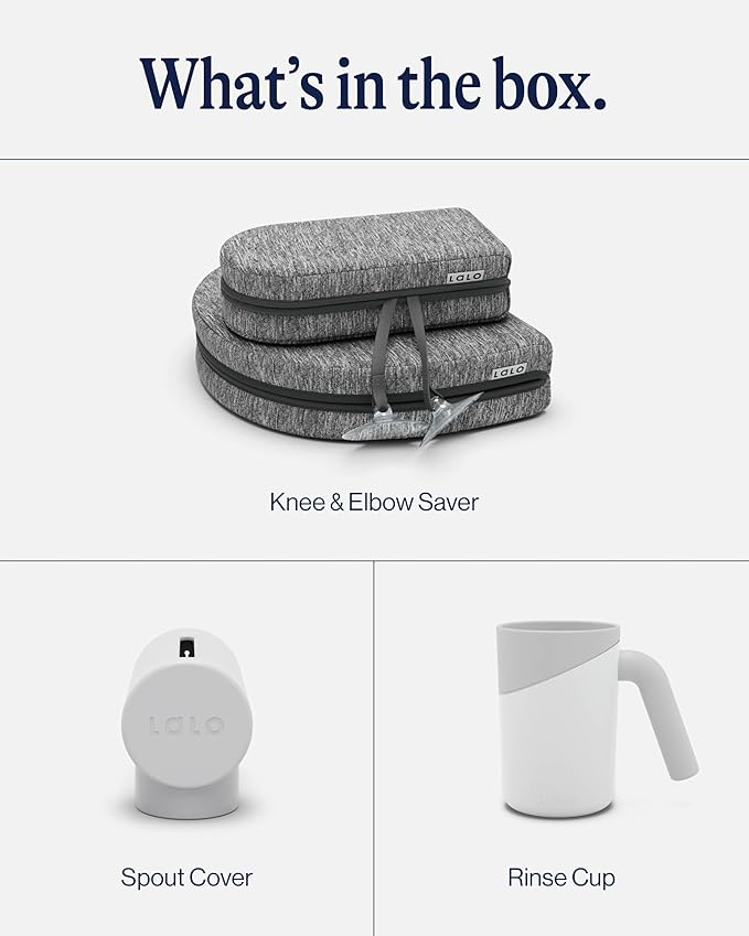 - EASY TO CLEAN & MAINTAIN: The bath rinse cup and Spout Cover can be washed with warm, soapy water and air-dried. The Knee & Elbow Saver is machine washable on a gentle cycle, making cleaning a breeze for busy parents.