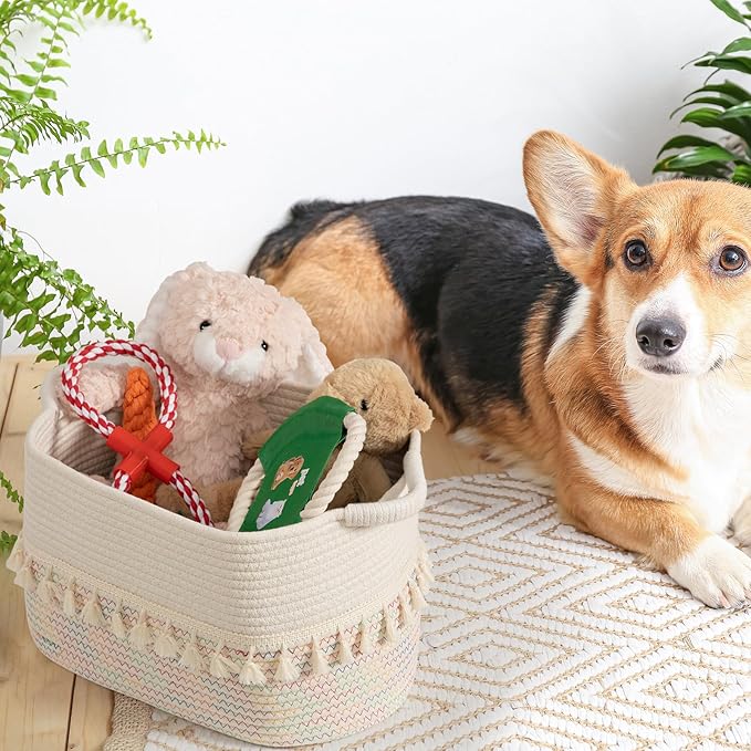 - Chic and practical storage: Our storage bins are stylish and functional to make your home effortless and elegant. Use storage basket in any room to store blankets, toys, magazines. The pet toys and small snacks also have their own place to go