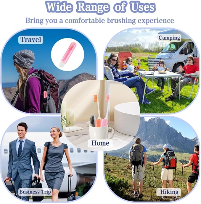 - Wide Range of Uses: The folding toothbrush can fit into a variety of occasions for camping, traveling, business trips, road trips, backpacking, hiking, airplane travel, holidays, guest houses and so on. Spas, hotels, motels, dormitories, office workers can also use our travel size toothbrush kit and satisfy your diversified needs.