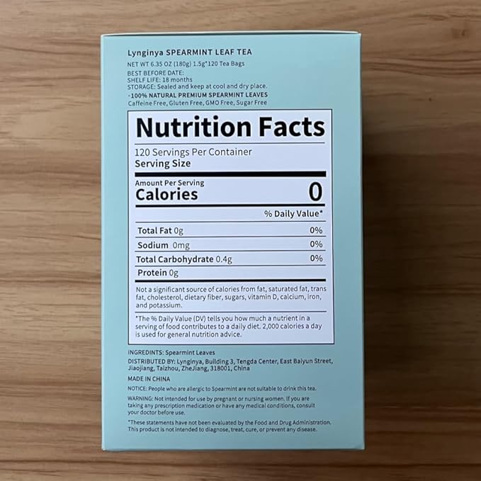 Lynginya Spearmint Tea, 120 Tea Bags - Premium Spearmint Leaves - Natural Herbal Tea - Refreshing & Minty - No Sugar & No Caffeine