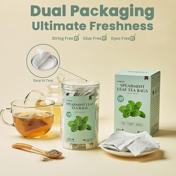 - Packaging: Our spearmint leaf tea bags are double-packed for quality during transport. Each is secure in bags and jars, with easy-to-open jars.