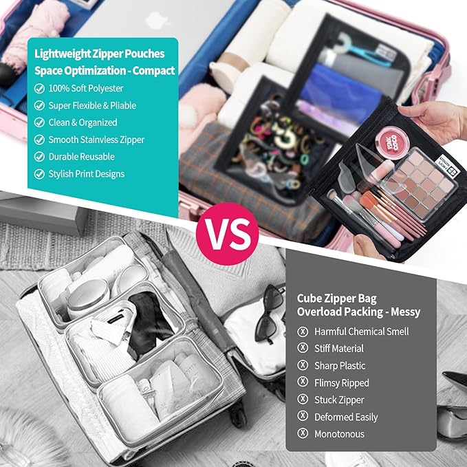 - 100 MORE PURPOSES: Our versatile travel pouch set with playful pattern make your organizing super simple and enjoyable. Compact design in ultra-light takes up very little room in your luggage,playful prints that both kids and adults love! It is perfect to get the clear travel bag for toiletries and cosmetics,also great as a diaper bag organizer to store baby stuff,toys,misc,first aid. Whether home or outing,it is stylish and well-organized