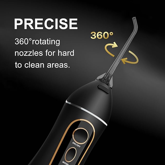- 【Deep Cleaning 】The 360°rotatable nozzle allows you to easily clean areas that are difficult to reach and prevents tooth decay,dental plaque,dental calculus,gingival bleeding and dental.