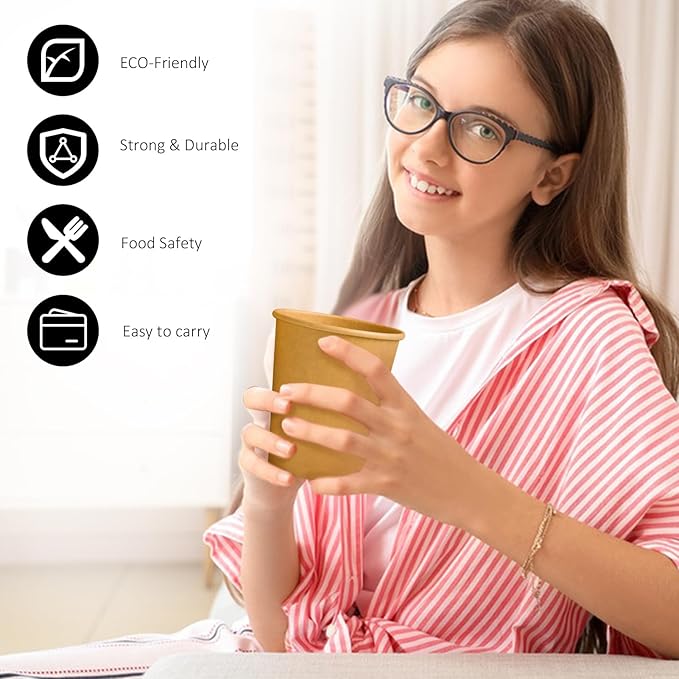- 【Widely Usage】The kraft cups can be ideal for family, school, office, birthday, wedding parties, cafes, restaurant, churches or for your picnic, so that you can make time for your guests rather than worry about washing the dishes