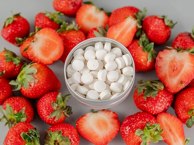 J&L Naturals Toothpaste Tablets | 62-Pack Travel-Friendly Toothpaste | Fluoride + Plastic Free, Vegan, Cruelty Free, Sustainable | Woman-Owned Small Business (Strawberry, 62 Count (Pack of 4))