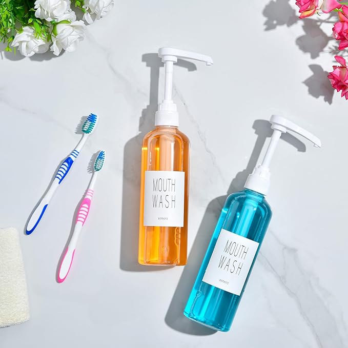 - 【Thickened Plastic Material】The mouthwash bottle looks like glass but is made of high-quality PET plastic, which is sturdy and cute, and you can reuse it thanks to its easy-filling liquid and cleaning.