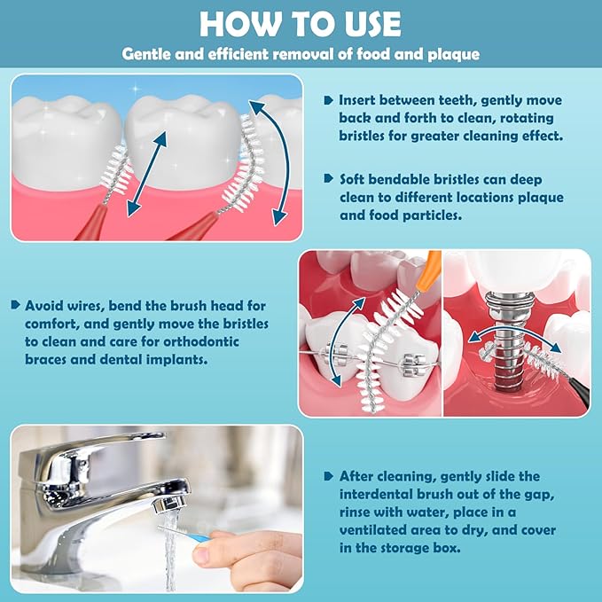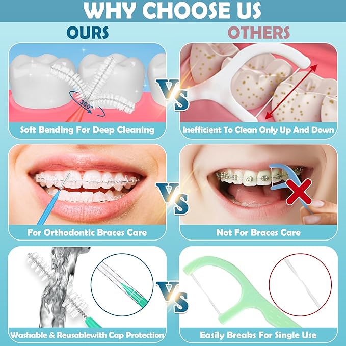 - Essential for Orthodontic Care: These brace brushes are a must-have tool for cleaning braces, crowns, bridges, implants, and hard-to-reach areas around your teeth. The 360° flexible brush head allows you to easily clean orthodontic appliances at home, saving you time and money on dental visits and improving your oral hygiene.