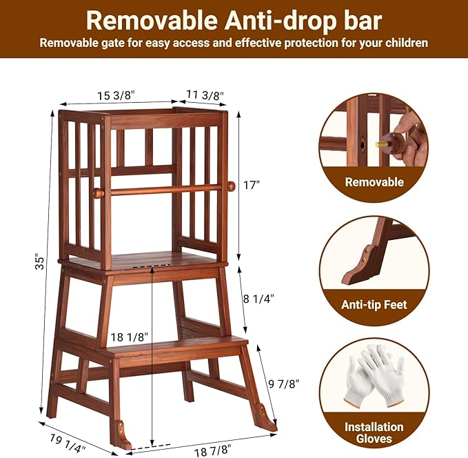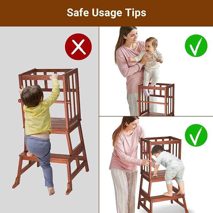 - Made to Last: This sturdy tower stool for learning is made from solid natural material with a child-safe, meticulous finish that prevents scratches and scuff marks. Safely supports 150 lbs for toddlers 18 months to 3 years old