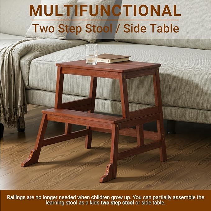 - Strong and Versatile: Hand-selected sustainable material is sturdy and lighter than other woods, and has great natural coloring. It also functions as a little table/desk, and as steps that can take the weight of adults when needed