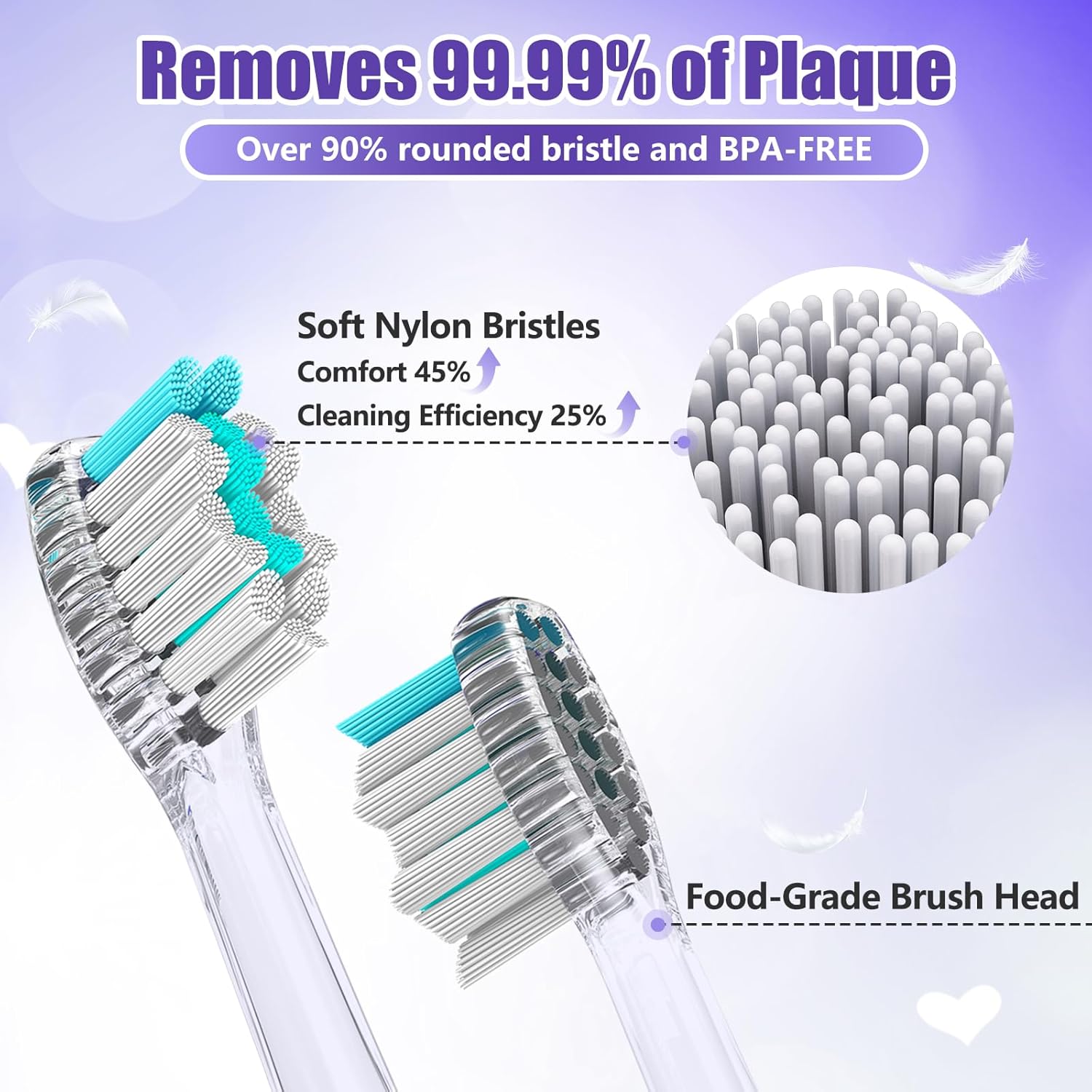 - LED Light for Precision, Special Bristles for Efficient Cleaning: This kids electric toothbrush is equipped with an LED white light inspection mode, helping parents accurately locate food residue and plaque. The soft bristles, with a diameter of 0.127mm and over 90% rounded tips (A+ industry standard), fit closely to children’s teeth surfaces. Paired with a high-efficiency sonic motor, it improves cleaning efficiency by at least 25% and comfort by 45% compared to regular bristles.