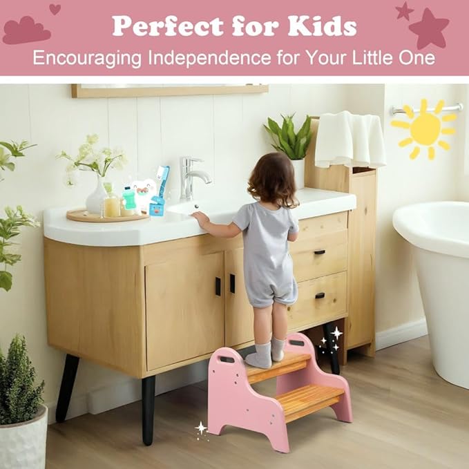 - Safe and Comfortable for Kids: Designed with rounded edges and a stable base, this 2-step stool is perfect for little feet, providing a secure and comfortable platform for your child to access everyday items safely.