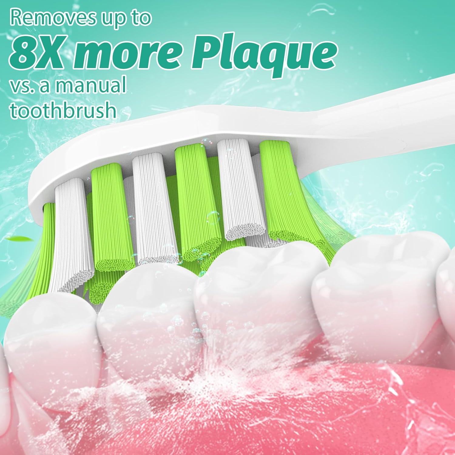 - 8X Better Plaque Removal – Healthier Gums & Whiter Teeth: Say goodbye to plaque! Aoremon brush heads feature densely packed, ultra-soft bristles that remove up to 8X more plaque than manual toothbrushes. Gentle, end-rounded tips protect sensitive gums while powerfully removing surface stains from coffee, tea, and food. Experience a deeper clean and a noticeably brighter smile every time you brush!