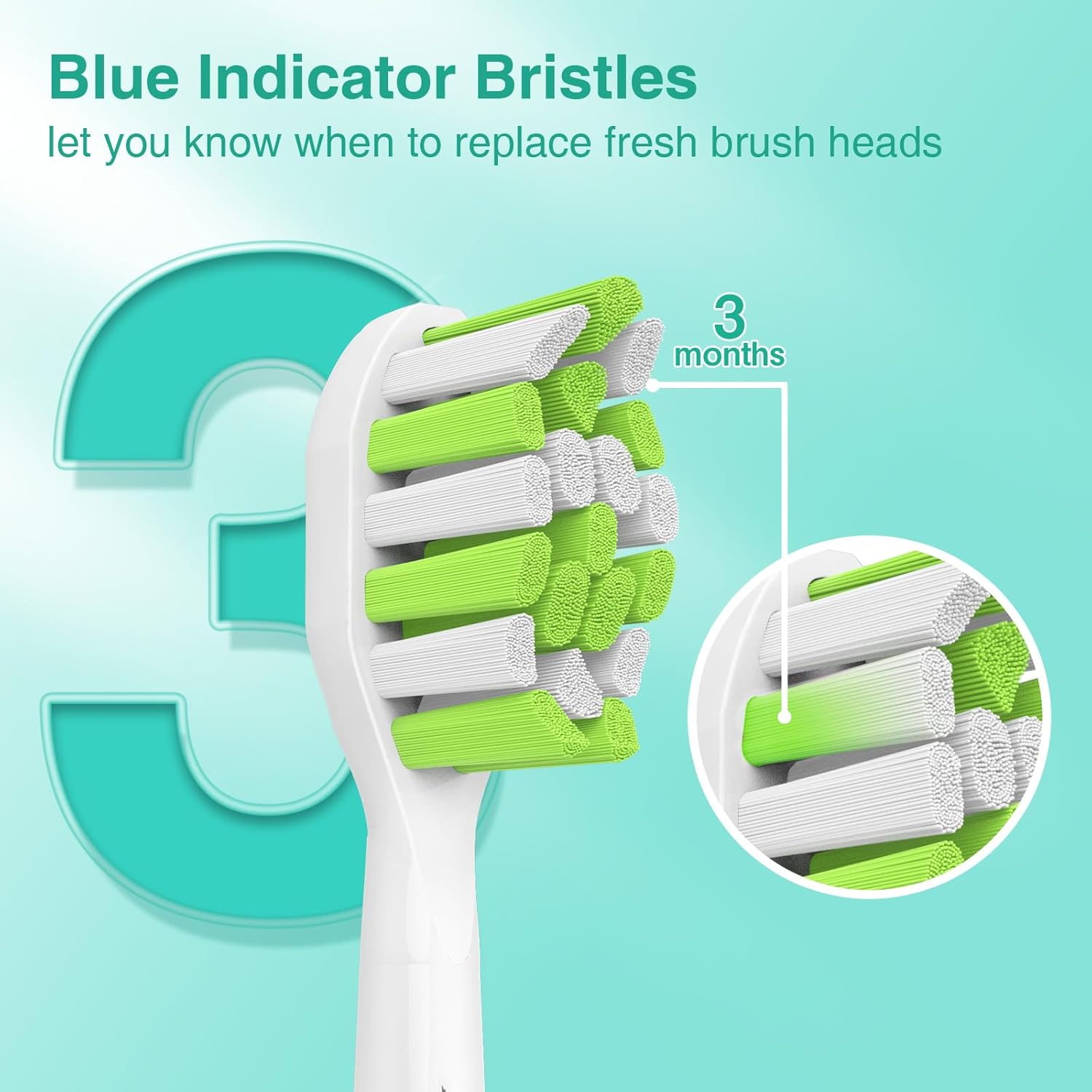 - Smart Replacement Indicator – Never Forget to Replace: Never brush with worn-out heads again! Our fade-to-blue indicator bristles make it simple. When 1/3 of the blue fades, it's time for a new head. Dentists recommend replacing brush heads every 3 months for optimal hygiene – Aoremon makes it easy to know exactly when. Maintain peak cleaning performance effortlessly!