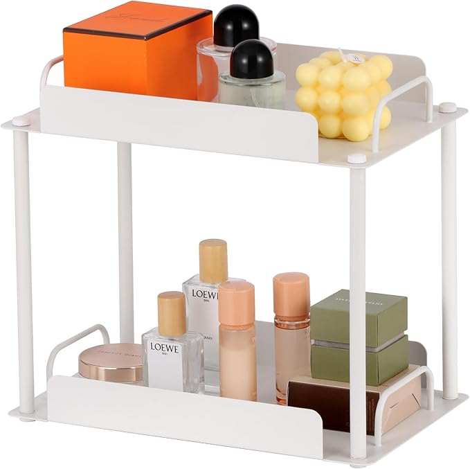 KATHY&BOB Bathroom Countertop Organizer, Make-up Desk Organization, Dressing Shelf Desktop Storage for Bathroom Cosmetic Dorm Kitchen Living Room, Multipurpose Cubicle Display Rack (White, 2 Tiers)