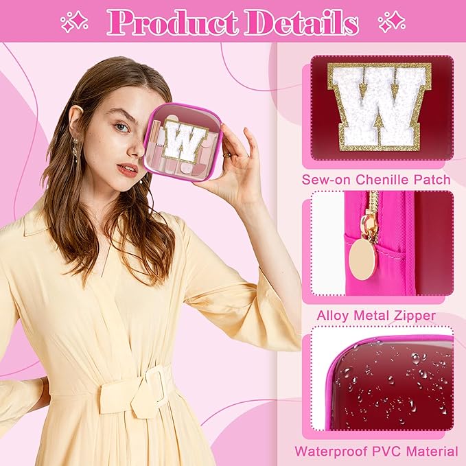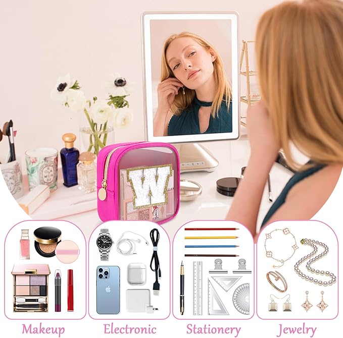 - 【Chenille Letter Patch Bag】Preppy initial makeup bag with professionally sewn chenille letter patches. You don't have to worry about them falling off. With its waterproof nylon & PVC design and unique glitter A-Z initials, it will surely stand out from all your makeup bags, brighten your mood and highlight your personality.