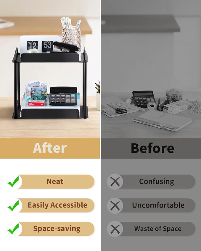 - 【Multipurpose Organizer Shelf】This desk shelf organizer is ergonomically designed to fit a variety of spaces. Whether you need to organize files, papers, books, office supplies, or small potted plants, this rack provides a convenient and stylish solution for your storage needs.