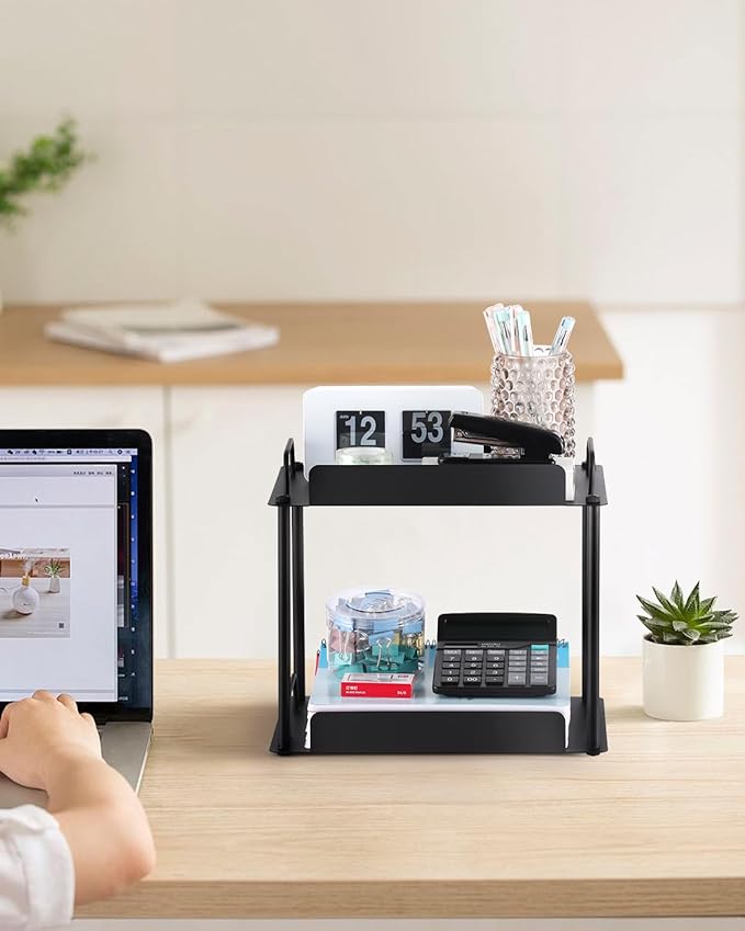 KATHY&BOB Bathroom Countertop Organizer, Make-up Desk Organization, Dressing Shelf Desktop Storage for Bathroom Cosmetic Dorm Kitchen Living Room, Multipurpose Cubicle Display Rack (Black, 2 Tiers)