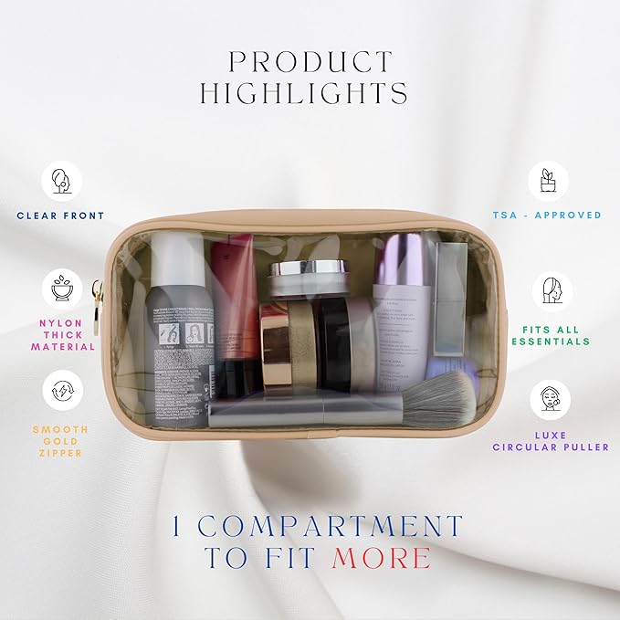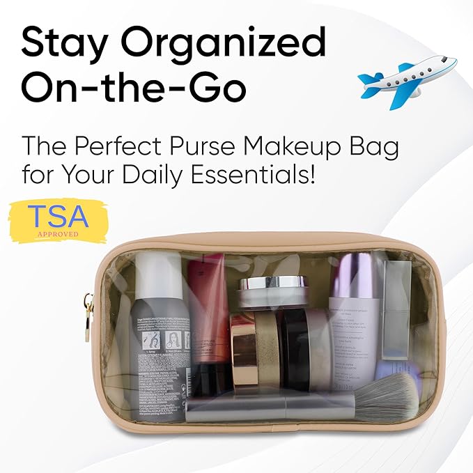 Clear Makeup Bag, Beige Mini Makeup Bag for Purse, Small Clear Cosmetic Bag, Pouch Organizer, Travel Cosmetic Case, Mini Pouch for Purse, Beige