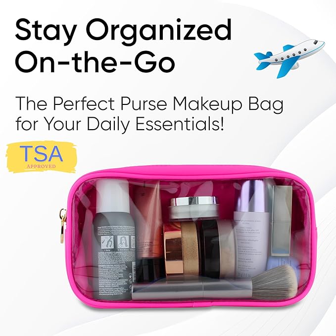 DANCOUR Clear Makeup Bag Mini Makeup Bag for Purse Mini Pouch Purse Clear Small Cosmetic Pouch Cosmetic Travel Case (Small, Hot Pink)