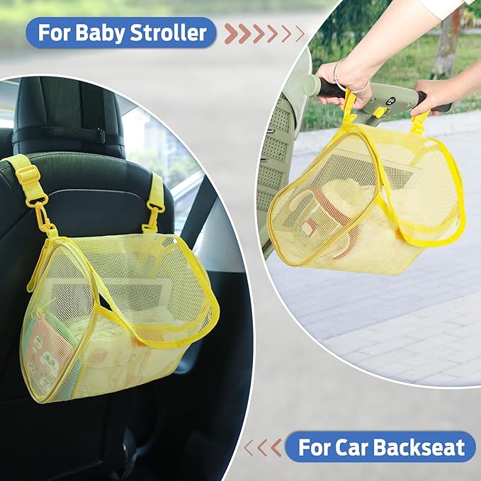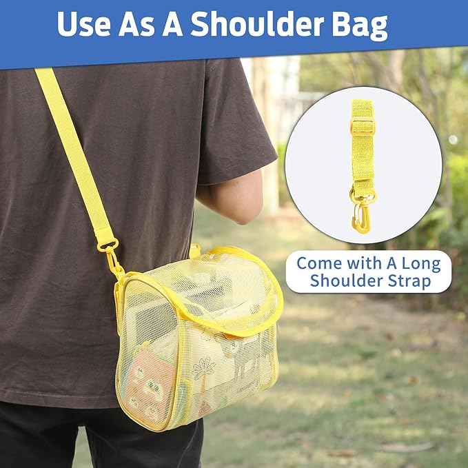 - [MULTI-FUNCTIONAL BATH TOY STORAGE]: The bath toy holder is detachable design with 6 velcro straps and 1 long shoulder strap, can be used for stroller or car backseat to store baby or child items; the bath toy storage also can be used as a shoulder bag to carry baby or child items out.