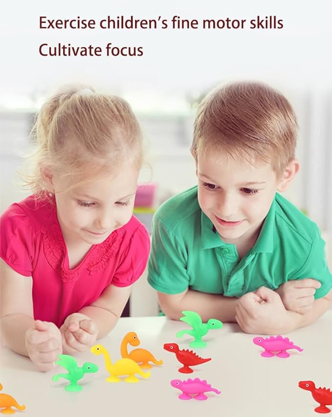 16 PCS Suction Cup Toys Bath Toys Party Favor for Kids ,Dinosaur Silicone Sucker Toys No Hole Bathtub Shower Toys Travel Toys Window Toys for Toddlers Boys Girls