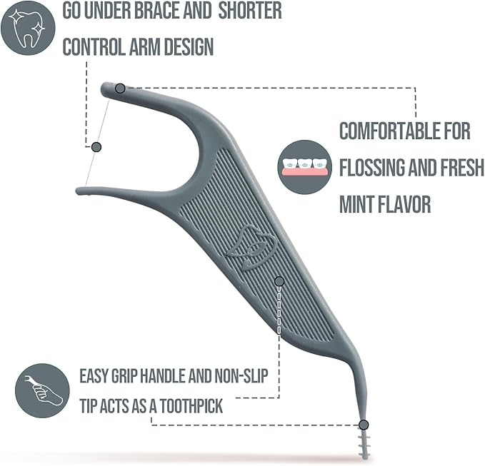 Dr. Emma Orthodontic Flossers for Braces, Ortho Dental Floss Picks, Mint Flavor 60 Count/Bag, Gray, 1 Pack