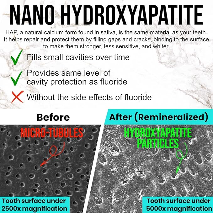 - Rod-Crystal Protection : Unlike ordinary toothpastes, Ollie uses rod-shaped hydroxyapatite that mimics natural enamel crystals. This structure binds more effectively to teeth, repairing micro-cracks, reducing sensitivity, and strengthening enamel for long-term cavity protection and a naturally whiter smile.