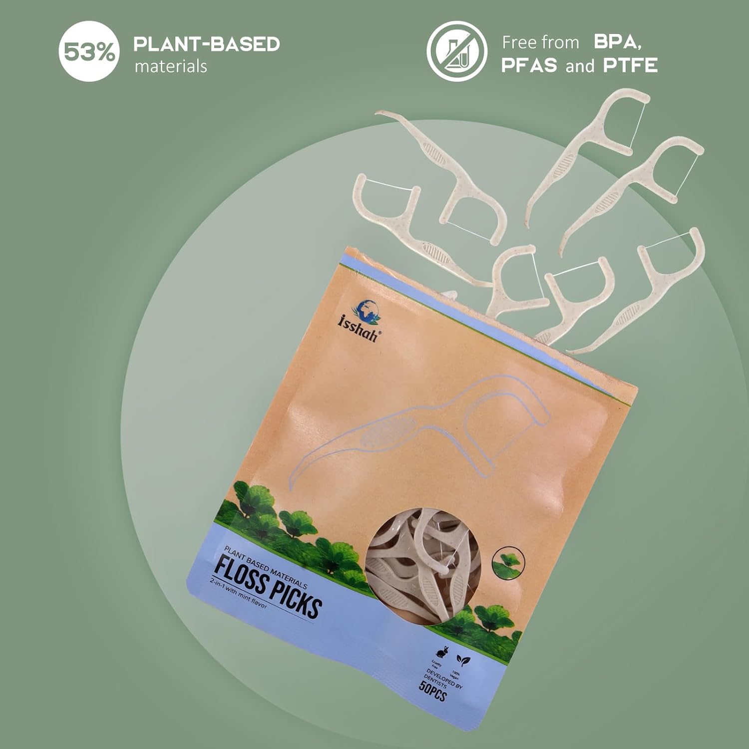 - GIVE A FRESH FEEL - Cool Mint flavored, isshah dental floss picks removes small food particles that get stuck between the teeth and around gums, and that can lead to bad breath, for a through clean.